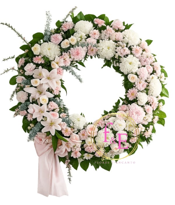 Corona fúnebre remanso de amor, elaborada en delicados tonos pasteles, combinando la suavidad de las rosas, la elegancia de los lilium y la frescura de los maules. Diseñada para transmitir paz, cariño y un último adiós lleno de respeto, esta pieza floral armoniza texturas y colores suaves, creando un homenaje sereno y lleno de sensibilidad. Incluye atril.