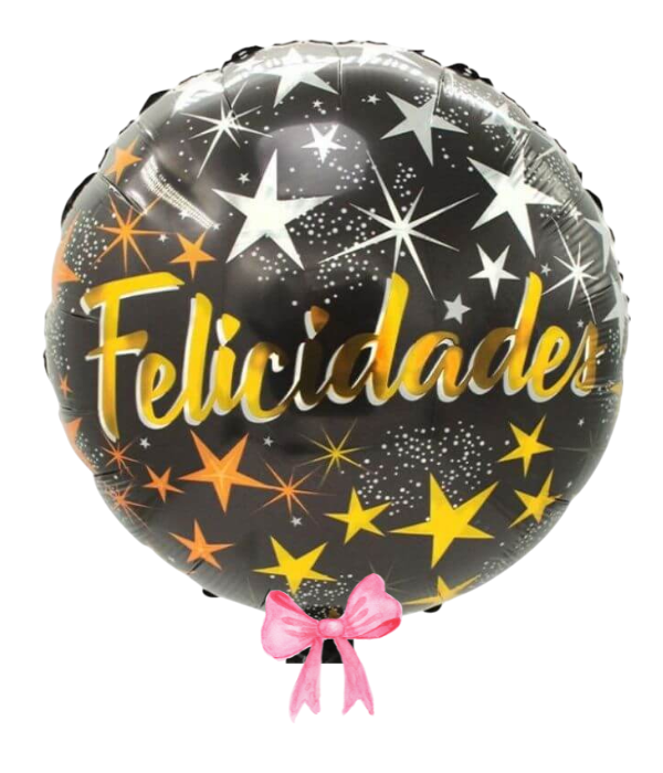 Globo metalizado grande motivo felicidades. Sujeto a disponibilidad.