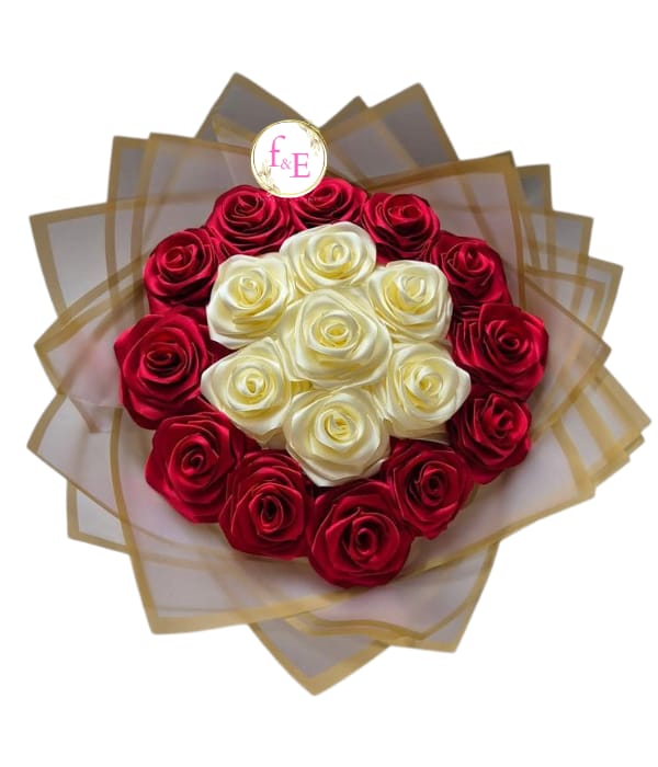 Hermoso ramo romance bicolor de jabón, elaborado con 20 rosas en tonos rojos y blancos, destacando por su elegancia, suavidad y durabilidad. Presentado con una envoltura delicada que resalta el contraste de colores, este diseño transmite amor, pureza y sofisticación. Un detalle perfecto para regalar y conservar por mucho tiempo.